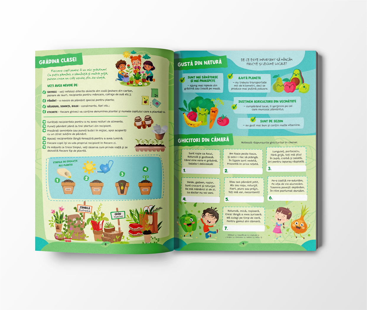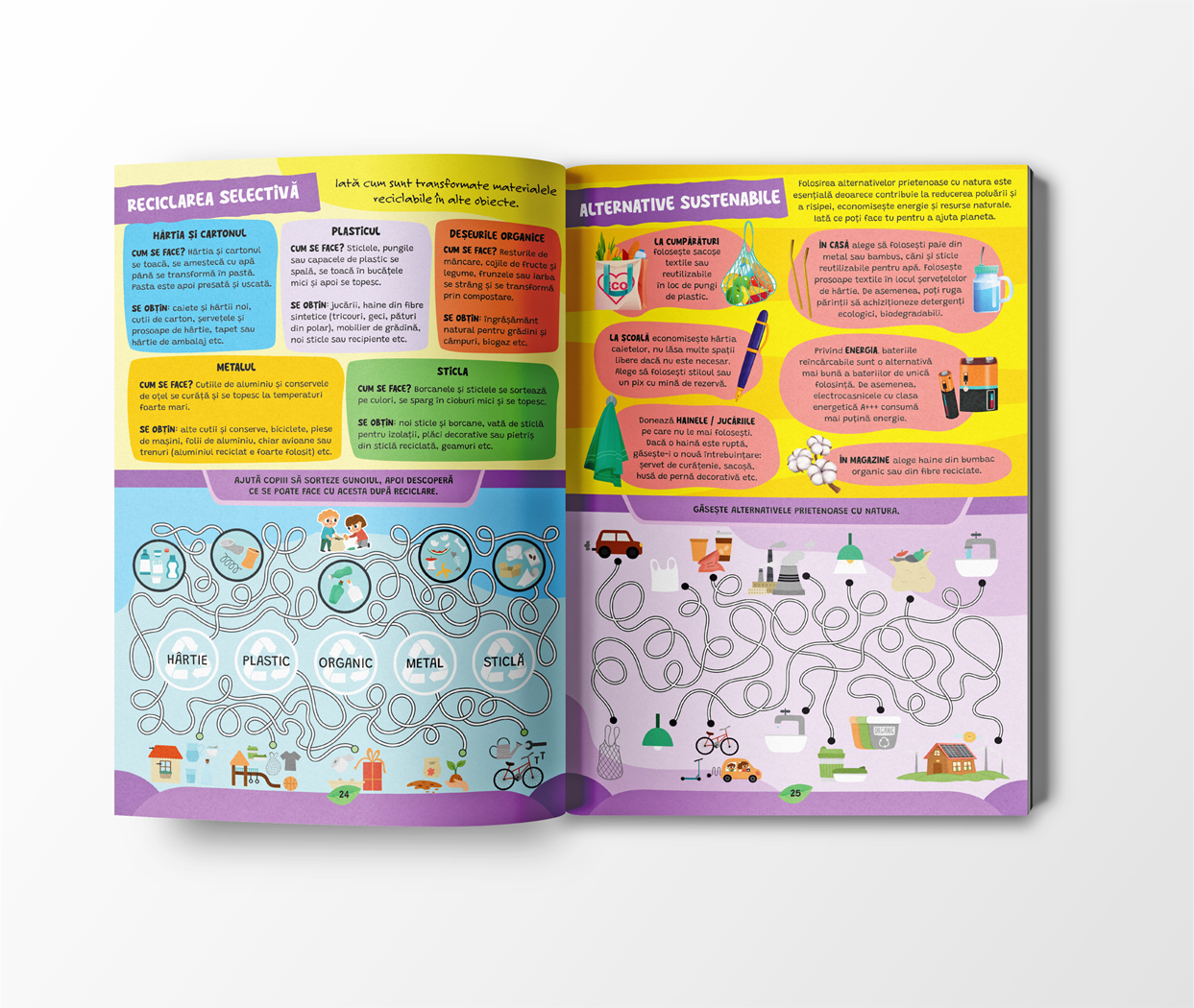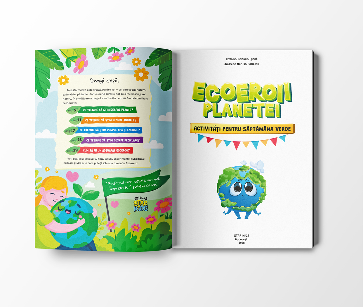 📗 Ecoeroii planetei – activități pentru Săptămâna Verde este o carte în format A4 ce include experimente interesante, proiecte creative, jocuri educative și provocări tematice care stimulează curiozitatea, lucrul în echipă și responsabilitatea față de planetă. Este structurată în cinci capitole: