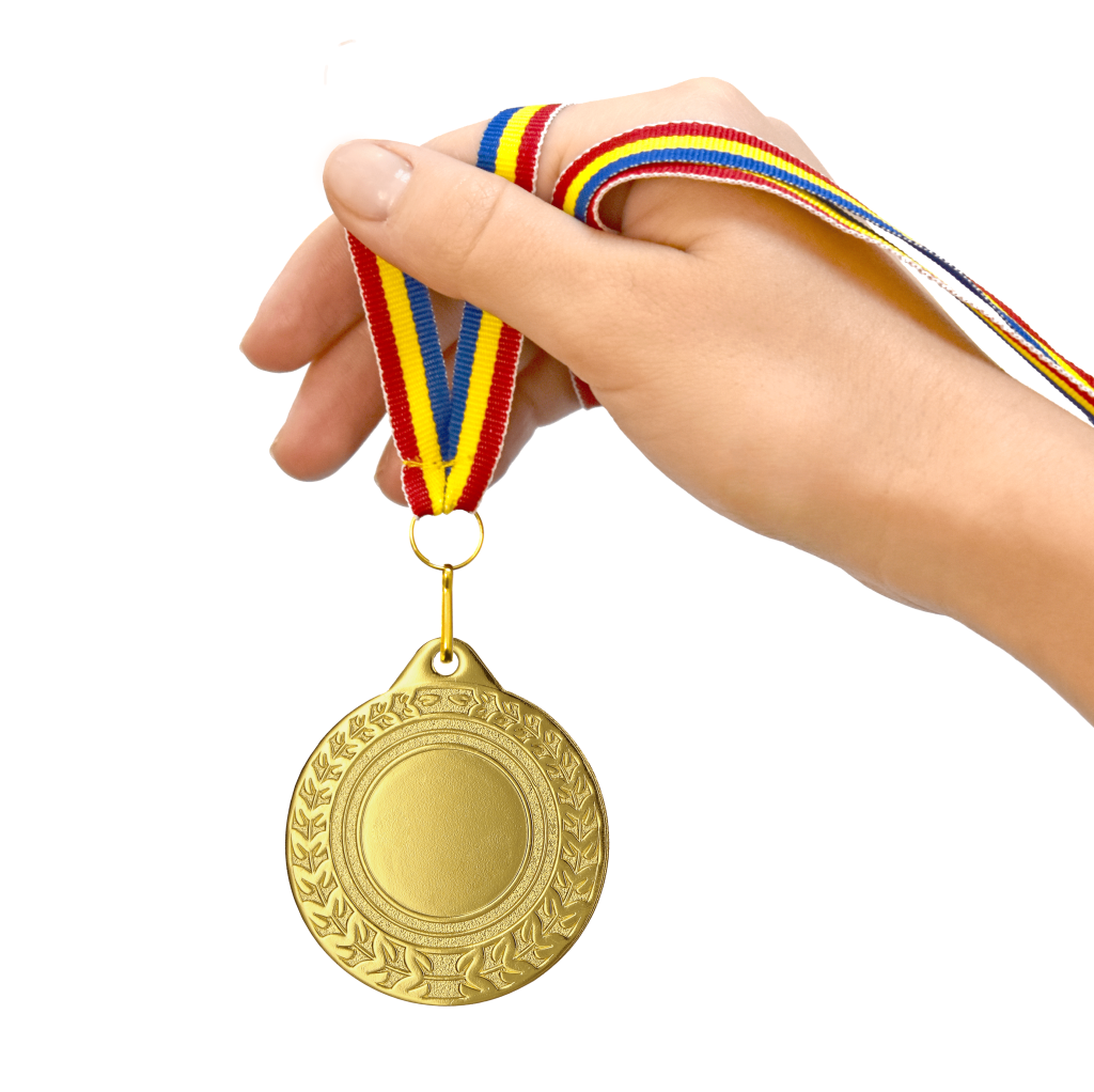 Pretul medaliei contine panglica tricolor si personalizarea