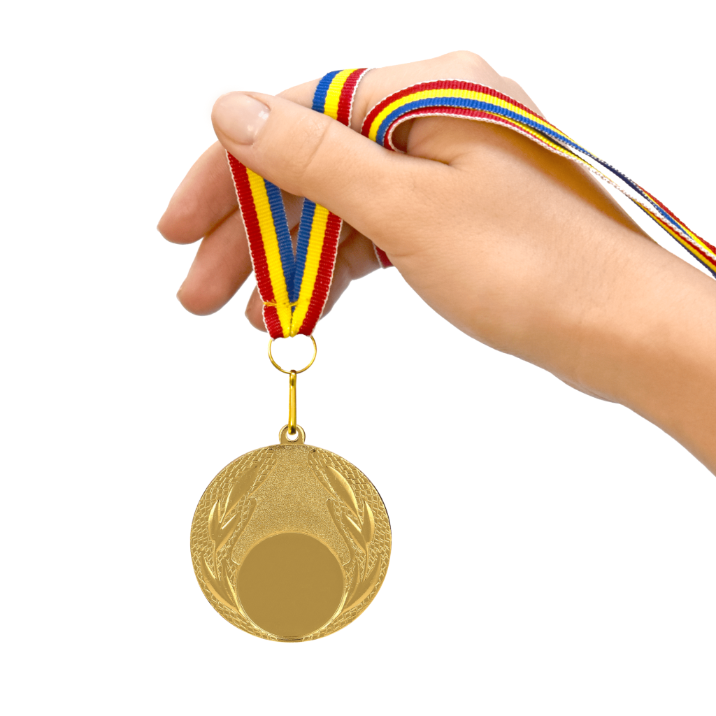 Pretul medaliei contine panglica tricolor si personalizarea