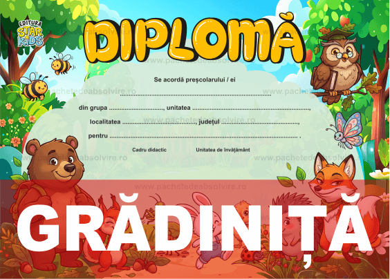 Pachetul 3 – PREȘCOLARI – conține Medalie + Diplomă + Mapă absolvent + la alegere Carte Alfabet/Carte Ferma Veselă.