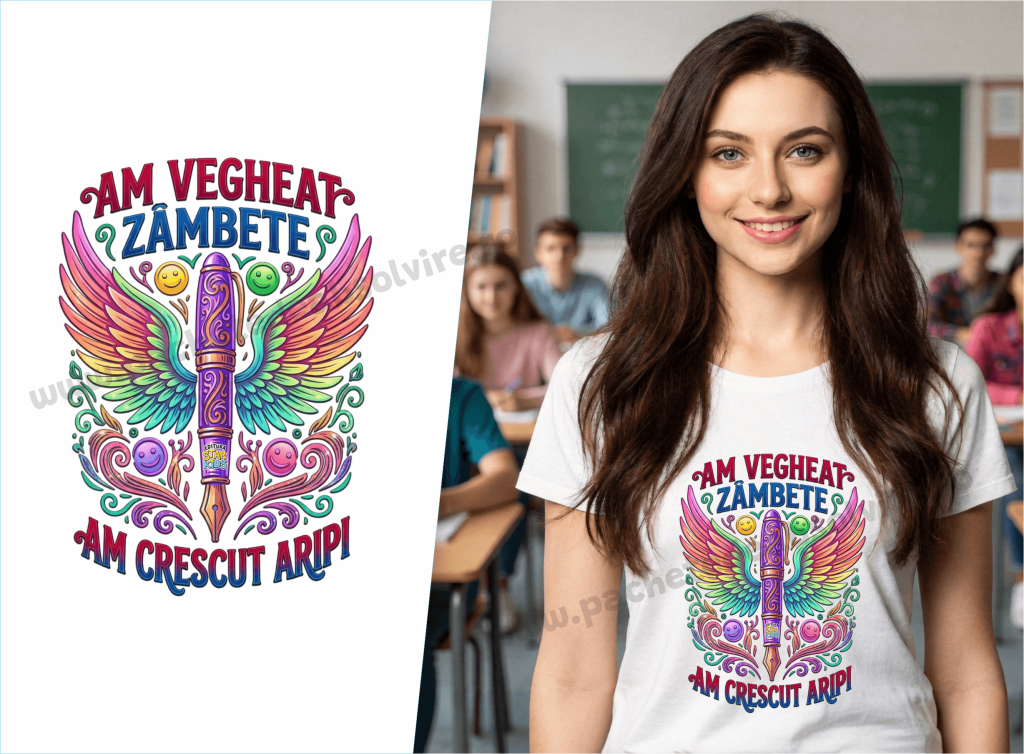 Tricou moale de bumbac cu imprimeu special creat pentru festivitatea de premiere, cu mâneci scurte. 100% bumbac