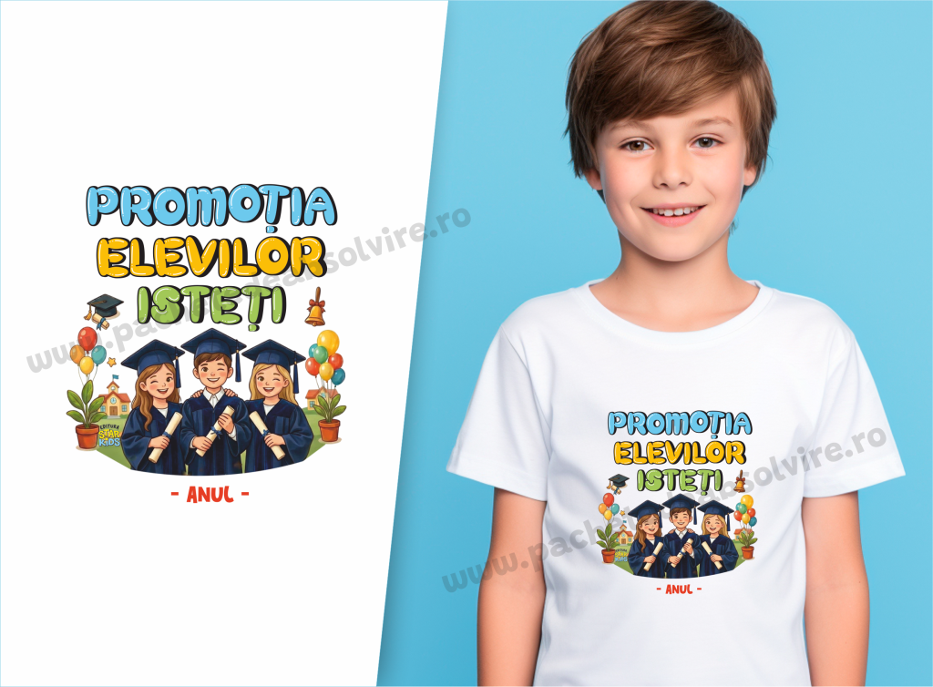 Tricou moale de bumbac cu imprimeu special creat pentru festivitatea de premiere, cu mâneci scurte. 100% bumbac