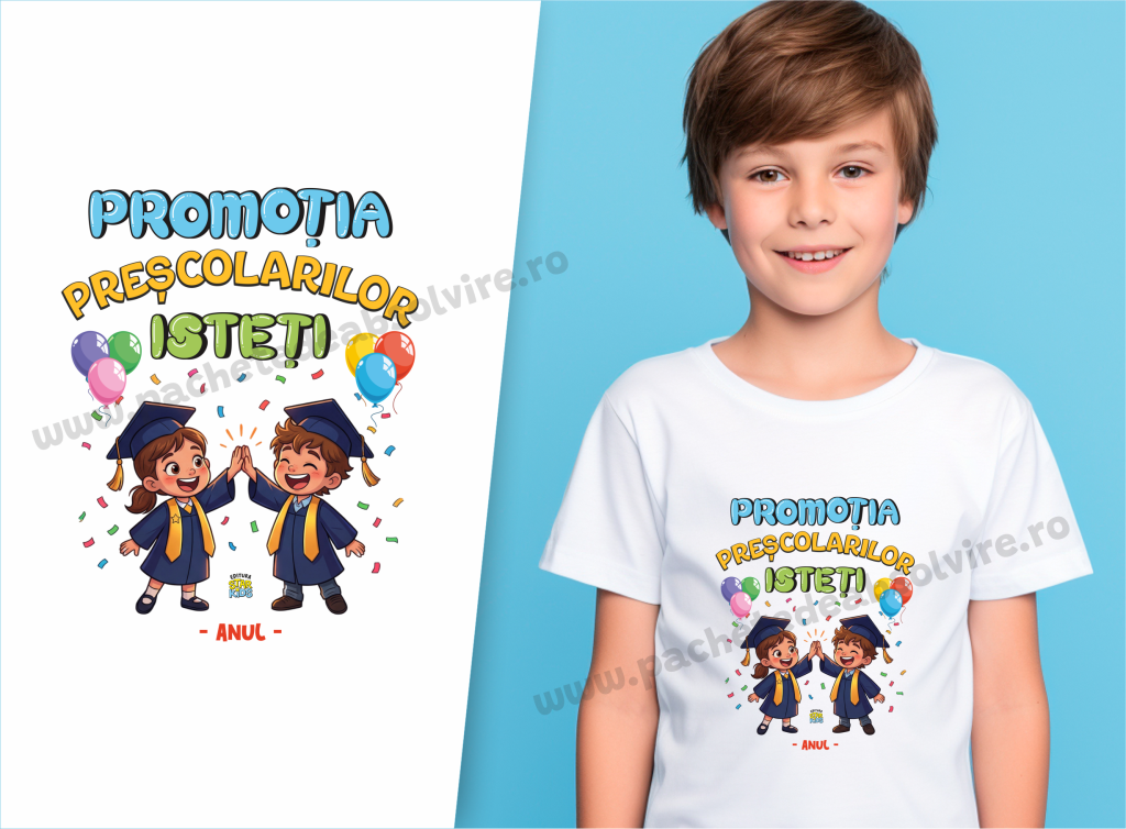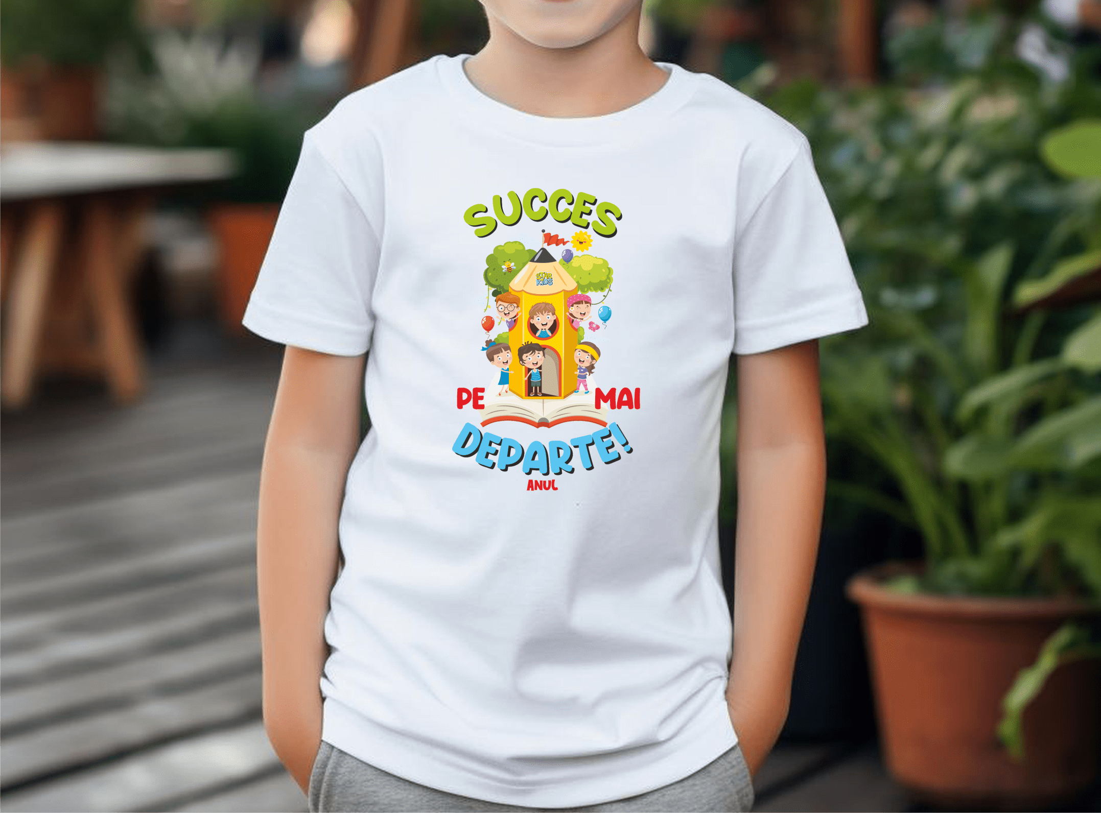 Tricou moale de bumbac cu imprimeu special creat pentru festivitatea de premiere, cu mâneci scurte. 100% bumbac